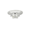 Platinum Square Emerald Cut Natural Diamond Engagement Ring with Trapezoid Side Diamonds