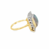 Vintage Yellow Gold Cocktail Ring with Bluish Green Cabochon Opal & Diamond Accents