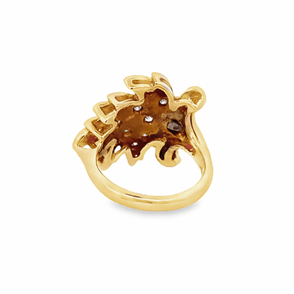 Yellow Gold Leaf Design Vintage Estate Ring with Round Brilliant Diamond